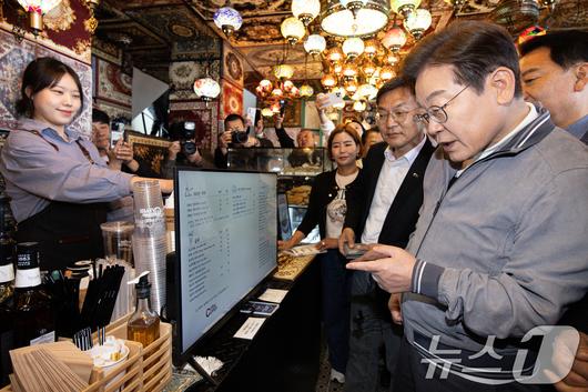 (강릉=뉴스1) 이재명 기자 = '골목골목 경청투어 : 동해안벨트편'에 나선 이재명 더불어민주당 대통령 후보가 3일 오후 강원 강릉시 강릉카페거리에 위치한 한 카페를 찾아 음료를 고르고 있다. 2025.5.3/뉴스12expulsion@news1.krCopyright ⓒ 뉴스1. All rights reserved. 무단 전재 및 재배포, AI학습 이용 금지.