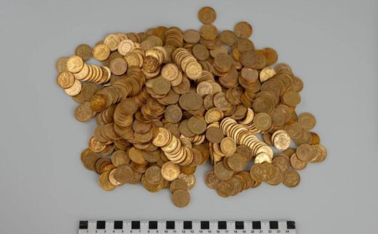 박물관 측 조사에 따르면 알루미늄 통에는 검은 천에 싸여 열 한 묶음으로 정리된 금화 598개가 들어 있었다. 이 금화들은 1808년부터 19세기 초에 제작됐으며 1921년 이후에 묻힌 것으로 보인다.