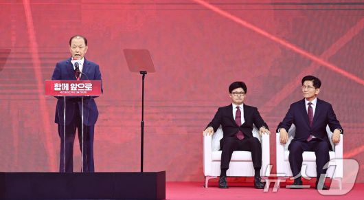 (고양=뉴스1) 이광호 기자 = 김문수, 한동훈 국민의힘 대선 경선 후보가 3일 경기 고양시 킨텍스에서 열린 5차 전당대회에서 황우여 선관위원장의 결과발표를 듣고 있다. (공동취재) 2025.5.3/뉴스1skitsch@news1.krCopyright ⓒ 뉴스1. All rights reserved. 무단 전재 및 재배포, AI학습 이용 금지.