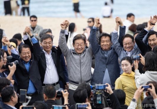 바닷가 앞 단상 위에 선 이 후보는 "대한민국이라는 하나의 공동체 속에서 같이 사는 식구들인데, 서로 너무 적대하지 말고 싸우더라도 죽일 것처럼 싸우지는 말아야 하지 않겠냐"며 "저도 시장이랑 도지사 합치면 (정치판에서) 10년 정도 됐는데, 제일 안타까운 게 뭘 그리 (서로) 죽이려고 그러는 거냐"고 말했다.