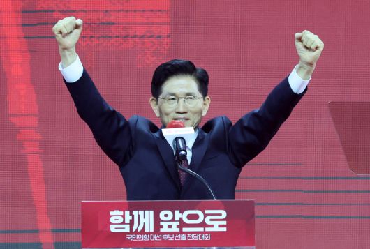 국민의힘은 3일 경기 고양시 킨텍스에서 전당대회를 열어 김 후보를 최종 대선 후보로 선출했다. 국민의힘은 지난 1∼2일 당원 선거인단 투표(50%)와 국민여론조사(50%)를 실시한 결과를 토대로 한동훈 후보를 꺾고 최다 득표를 차지한 김문수 후보를 대통령 후보로 확정했다.