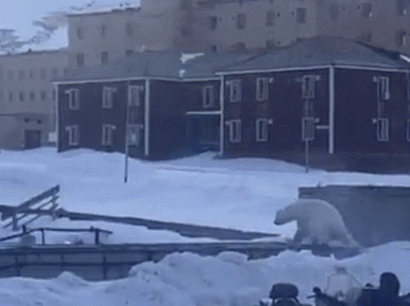 북극곰 한 마리가 호텔 주차장을 서성이자 쫓아내기 위해 경고 사격에 나선 건데 오히려 쫓기는 신세가 되어버린 것이다.
