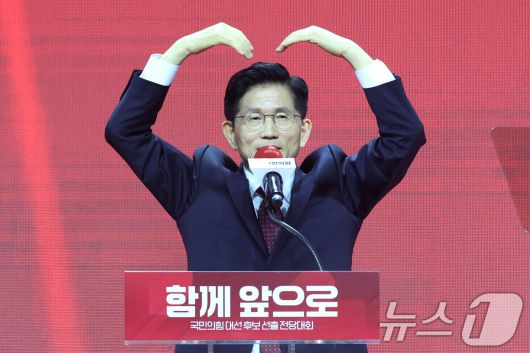 (고양=뉴스1) 이광호 기자 = 제21대 대통령선거 국민의힘 후보자로 선출된 김문수 후보가 3일 경기 고양시 킨텍스에서 열린 5차 전당대회에서 수락연설을 하고 있다. 2025.5.3/뉴스1skitsch@news1.krCopyright ⓒ 뉴스1. All rights reserved. 무단 전재 및 재배포, AI학습 이용 금지.