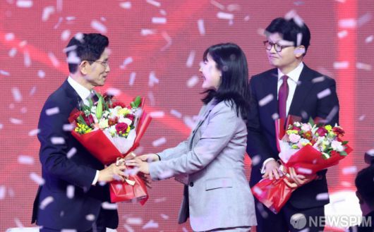 [고양=뉴스핌] 최지환 기자 = 국민의힘 대선후보로 선출된 김문수 후보가 3일 오후 경기 고양시 킨텍스에서 열린 국민의힘 제5차 전당대회에서 꽃다발을 받고 있다. 2025.05.03 choipix16@newspim.com |