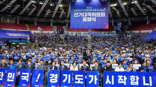 [수원=뉴시스] 이병희 기자 = 더불어민주당 경기도당이 3일 수원에서 선거대책위원회를 출범하며 이재명 후보의 대선 승리와 국민통합을 위한 압도적 지지를 결의했다.