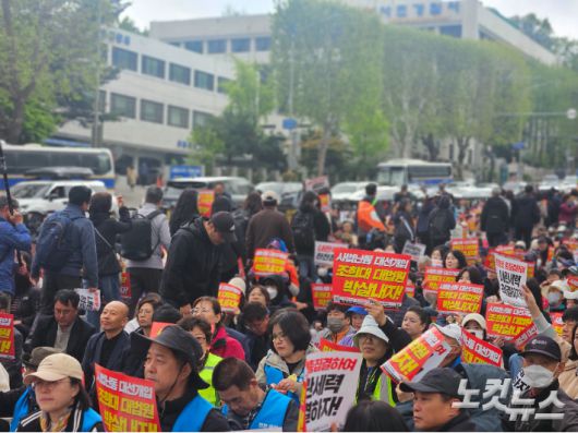 이날 오후 다소 쌀쌀한 날씨에도 담요 등 방한용품을 착용하고 집회에 참여한 이들은 '사법난동 대선개입 조희대 대법원 박살 내자', '촛불로 총집결해 내란세력 척결하자'는 문구가 적힌 팻말을 흔들었다.
