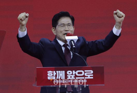 3일 경기 일산 킨텍스 제1전시장에서 열린 국민의힘 대선 후보 선출을 위한 제5차 전당대회에서 대선 후보로 선출된 김문수 후보가 수락연설을 하고 있다. 고이란 기자 photoeran@ |