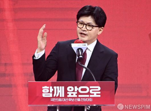 [서울=뉴스핌] 국회사진취재단 = 국민의힘 대선경선에서 탈락한 한동훈 후보가 3일 오후 경기 고양시 킨텍스에서 열린 국민의힘 제5차 전당대회에서 승복연설을 하고 있다. 2025.05.03 photo@newspim.com