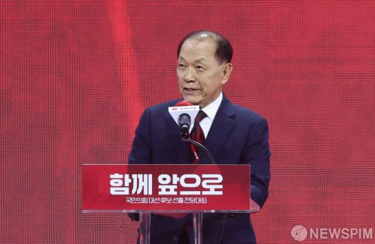 [고양=뉴스핌] 최지환 기자 = 황우여 국민의힘 선거관리위원장이 3일 오후 경기 고양시 킨텍스에서 열린 국민의힘 제5차 전당대회에서 인사말을 하고 있다. 2025.05.03 choipix16@newspim.com