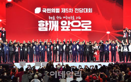 [이데일리 이영훈 기자] 김문수 국민의힘 대선 후보가 3일 오후 경기 고양시 킨텍스에서 열린 국민의힘 최종 대선 후보 선출을 위한 전당대회에서 후보로 선출된 뒤 지도부 등과 만세를 하고 있다.