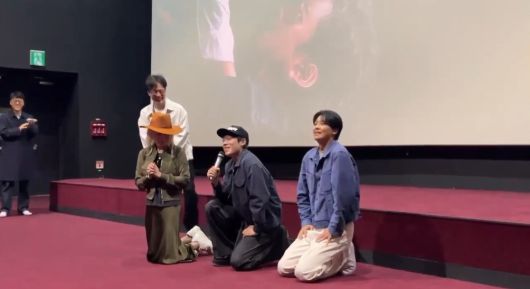 그의 파격적인 인사에 관객들은 놀란 것도 잠시 환호했고, 대선배의 인사에 김성철과 연우진, 민규동 감독이 함께 바로 무릎을 꿇어 눈길을 끈다. '파과' 팀의 진심에 현장에는 박수와 환호가 쏟아졌다.