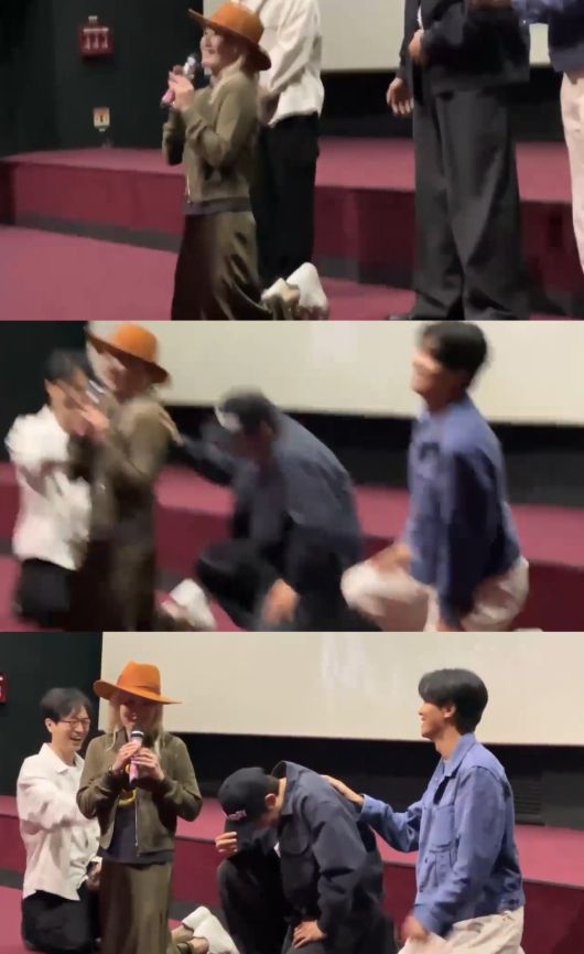 김성철은 "선생님 이제 일어나세요"라며 이혜영을 챙기며 "무릎까지 꿇고 부산에 왔다. 무대인사 할 수 있어 너무 좋은 시간이다"라는 진심을 전했다.