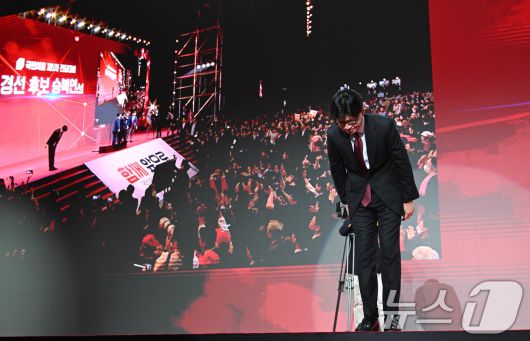 (고양=뉴스1) 김민지 기자 = 한동훈 국민의힘 대선 경선 후보가 3일 경기 고양시 킨텍스에서 열린 5차 전당대회에서 승복 연설에 앞서 인사하고 있다. (공동취재) 2025.5.3/뉴스1kimkim@news1.krCopyright ⓒ 뉴스1. All rights reserved. 무단 전재 및 재배포, AI학습 이용 금지.