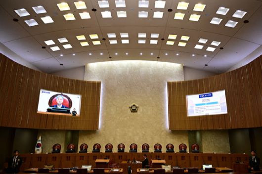 조희대 대법원장을 비롯한 대법관들이 1일 오후 서울 서초구 대법원 대법정에서 이재명 더불어민주당 대선 후보의 공직선거법 위반 사건 상고심 선고를 준비하고 있다. [사진=사진공동취재단] |