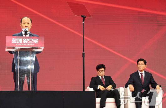 (고양=뉴스1) 김민지 기자 = 김문수(왼쪽), 한동훈 국민의힘 대선 경선 후보가 3일 경기 고양시 킨텍스에서 열린 5차 전당대회에서 황우여선관위원장의 결과 발표를 듣고 있다. (공동취재) 2025.5.3/뉴스1kimkim@news1.krCopyright ⓒ 뉴스1. All rights reserved. 무단 전재 및 재배포, AI학습 이용 금지.