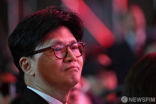 [서울=뉴스핌] 국회사진기자단 = 국민의힘 대선경선에서 탈락한 한동훈 후보가 3일 오후 경기 고양시 킨텍스에서 열린 국민의힘 제5차 전당대회에서 김문수 후보의 연설을 듣고 있다. 2024.05.03 photo@newspim.com
