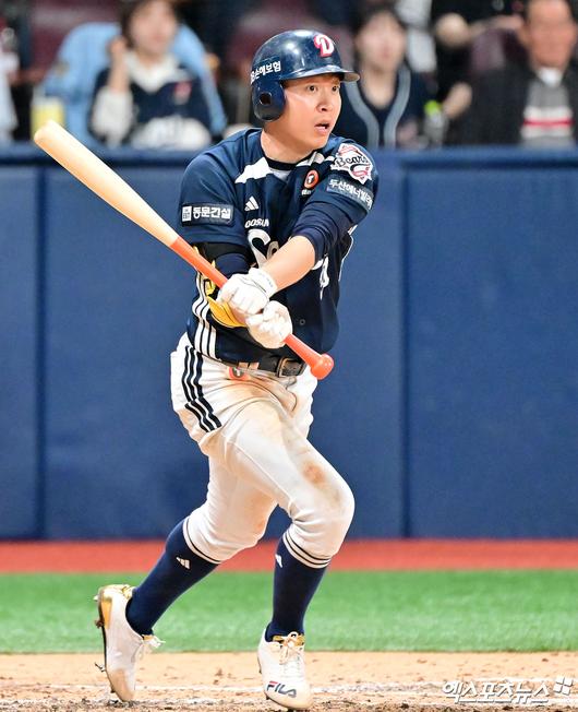 1회초 2사 후 양의지가 좌전 안타를 쳤다. 김재환의 헛스윙 삼진으로 이닝이 종료됐다.