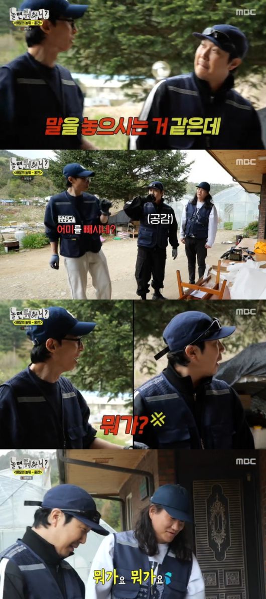 3일 오후 방송된 MBC 예능프로그램 ‘놀면 뭐하니?’(연출 김진용 장우성 장효종 왕종석, 작가 최혜정)에는 홍천 여사님의 테이블을 조립해주는 유재석과 하하, 임우일이 모습을 보였다.