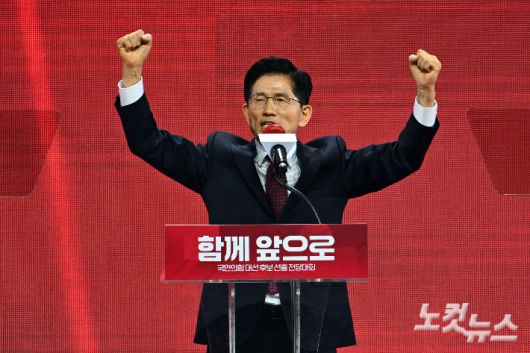 3일 경기도 일산 킨텍스에서 열린 국민의힘 제21대 대통령 선거 후보 선출을 위한 제5차 전당대회에서 대선 후보로 선출된 김문수 대선 후보가 수락 연설을 하고 있다. 윤창원 기자 |