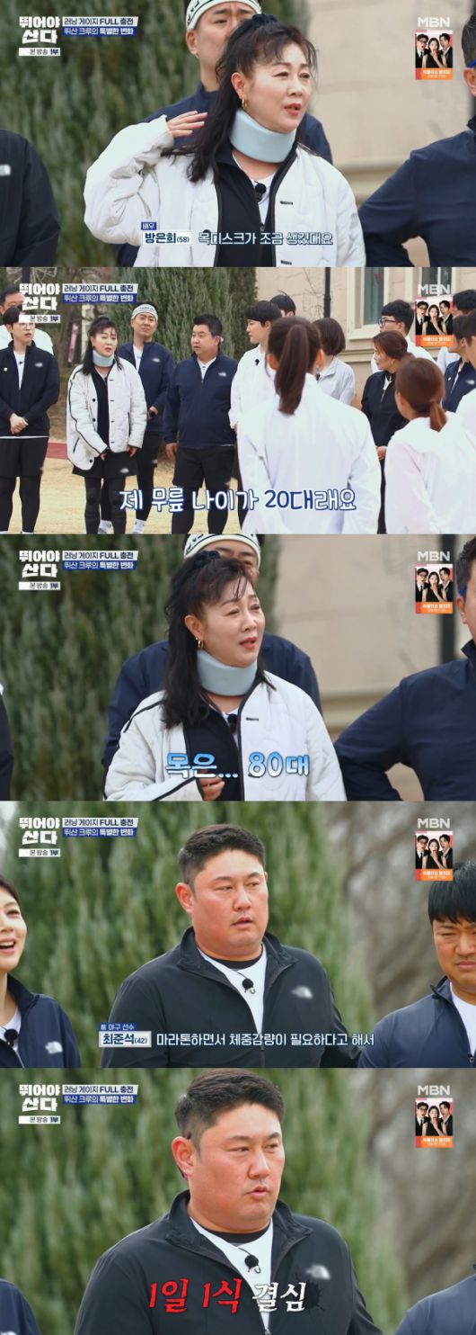 '뛰어야 산다' 방은희, 목에 깁스하고 등장 "무릎은 20대인데 목은 80대" [TV캡처]