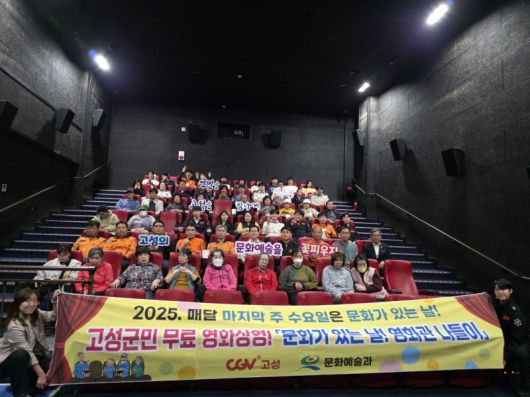 고성군은 군민에게 다양한 문화·예술 행사 관람 기회를 제공하여 문화예술 감성지수를 높이고 건전한 여가문화 활성화 및 군민의 삶의 질 향상을 위해 ‘2025년 4월 문화가 있는 날! 영화관 나들이’ 행사를 시행했다.