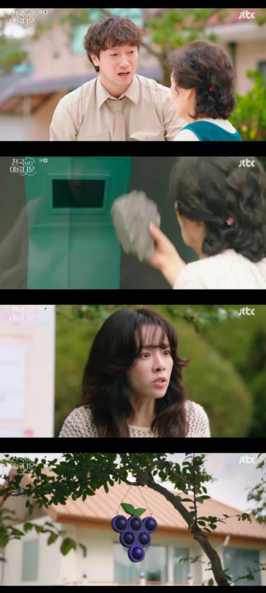 3일 방송된 JTBC 토일드라마 '천국보다 아름다운' 5회에는 이해숙(김혜자)이 마지막 포도알을 받고 지옥으로 끌려간 가운데, 고낙준(손석구)이 그를 구하기 위해 스스로 지옥에 발을 들인 모습이 그려졌다.