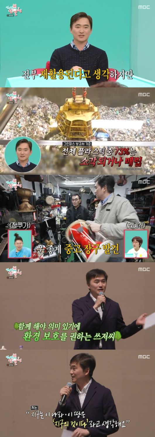 이때 버려진 온열기를 발견한 그는 “쓸만한 걸 버렸네. 딱 필요했던 건데~ 이렇게 또 횡재하네”라며 호탕하게 웃더니 온열기를 챙겼다. 매니저는 “선배님이 길거리에 쓸만한 게 있으면 종종 주워 오세요. 평소에 환경에 대해서 많이 말씀하시고 환경 관련된 팁들을 많이 알고 계시거든요. 원래 물건도 많이 사고 싶었는데 그런 생각이 바뀌었어요. 쓰레기 아저씨의 쓰레기 매니저라는 말을 많이 해주시더라고요”라며 나름 만족하는 속사정을 전했다.