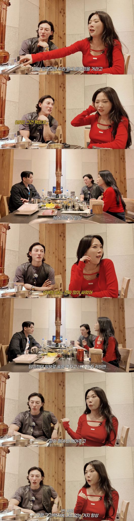 그럼에도 허니제이는 "승훈이는 친구고 나는 마누라지 않나. 나랑도 보내는 시간이 있어야할거 아니냐"고 토로하며 "나는 일을 끝내면 남은 시간은 담이랑 놀고싶어한다. 그리고 나는 원래 술을 잘 먹지도 않지만, 우리가 요즘 대화가 없는것 같으면 일부러 술먹자고 한다. 술먹으면 진솔한 얘기를 할수있고 그런 시간을 보내니까. 심지어 술을 안먹는 사람인데도 담이한테 일부러 술을 먹자고 먼저 권하면 절대 안먹어준다. 그리고 더 바쁘다는게 본인의 선택으로 인해 바쁜거다. 그럼 그 선택지에 나는 없는거다 항상. 왜 그래?"라고 물었다.