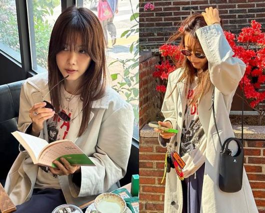 이날 그녀는 크림 컬러의 오버핏 트렌치코트를 루즈하게 걸쳐, 캐주얼한 멋과 도시적인 감각을 동시에 담아냈다.