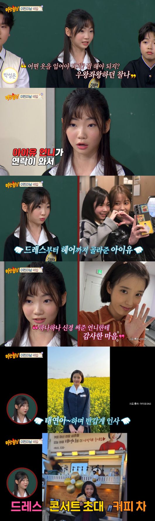 또한 3일 JTBC '아는 형님'에 출연한 어린 애순을 연기한 아역 배우 김태연 또한 아이유와의 일화를 공개했다.