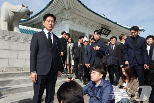 (서울=뉴스1) 안은나 기자 = 김문수 국민의힘 대통령 후보가 4일 오전 서울 동작구 국립서울현충원을 찾아 현충탑 참배를 마친 뒤 백브리핑을 하고 있다. 2025.5.4/뉴스1coinlocker@news1.krCopyright ⓒ 뉴스1. All rights reserved. 무단 전재 및 재배포, AI학습 이용 금지.