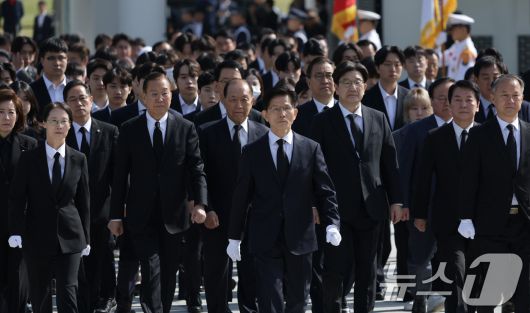(서울=뉴스1) 안은나 기자 = 김문수 국민의힘 대통령 후보가 4일 오전 서울 동작구 국립서울현충원을 찾아 당 지도부와 현충탑 참배를 위해 이동하고 있다. (공동취재) 2025.5.4/뉴스1coinlocker@news1.krCopyright ⓒ 뉴스1. All rights reserved. 무단 전재 및 재배포, AI학습 이용 금지.