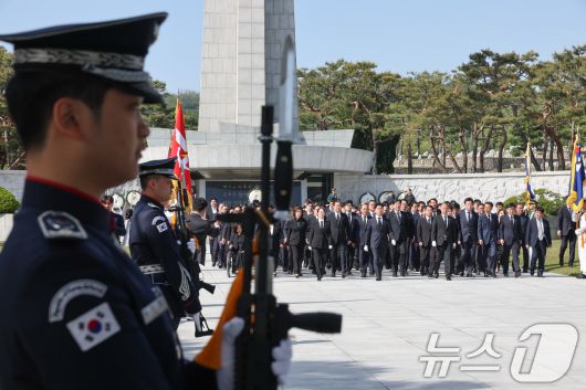 (서울=뉴스1) 안은나 기자 = 김문수 국민의힘 대통령 후보가 4일 오전 서울 동작구 국립서울현충원을 찾아 현충탑 참배를 마친 뒤 이동하고 있다. 2025.5.4/뉴스1coinlocker@news1.krCopyright ⓒ 뉴스1. All rights reserved. 무단 전재 및 재배포, AI학습 이용 금지.