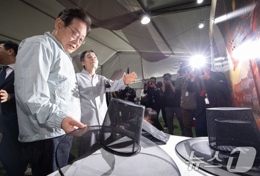 (영주=뉴스1) 이재명 기자 = '골목골목 경청투어 : 단양팔경편'에 나선 이재명 더불어민주당 대통령 후보가 4일 오전 경북 영주시 문정둔치에서 열린 2025 영주 한국선비문화축제에서 갓을 살펴보고 있다. 2025.5.4/뉴스12expulsion@news1.krCopyright ⓒ 뉴스1. All rights reserved. 무단 전재 및 재배포, AI학습 이용 금지.