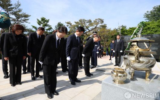 [서울=뉴스핌] 이호형 기자 = 김문수 국민의힘 대선 후보가 4일 오전 서울 동작구 국립서울현충원에서 김영삼 전 대통령 묘역서 참배하고 있다. 2025.05.04 leemario@newspim.com