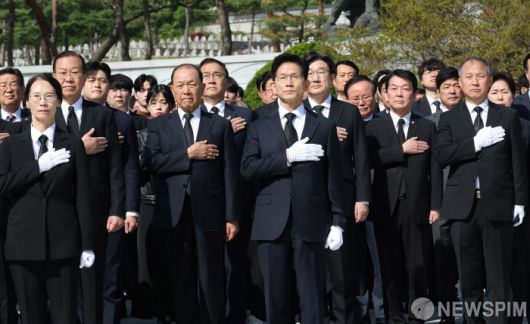 [서울=뉴스핌] 이호형 기자 = 김문수 국민의힘 대통령선거 후보가 4일 오전 서울 동작구 국립서울현충원 현충탑 참배를 마치고 국기에 경례하고 있다. 2025.05.04 leemario@newspim.com
