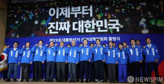더불어민주당은 4일 비상 의원총회를 열고 대법원이 이재명 대통령 후보의 공직선거법 위반 사건을 유죄 취지로 파기환송한 것에 대한 대응 방안을 논의한다. 사지은 이재명 더불어민주당 대선 후보가 지난달 30일 오후 서울 여의도 국회 의원회관에서 열린 더불어민주당 제21대 대통령선거 '진짜 대한민국' 중앙선거대책위원회 출범식에서 윤여준, 박찬대 더불어민주당 상임 총괄선대위원장을 비롯한 선대위원장들과 기념촬영을 하는 모습. [사진=뉴스핌 DB] |
