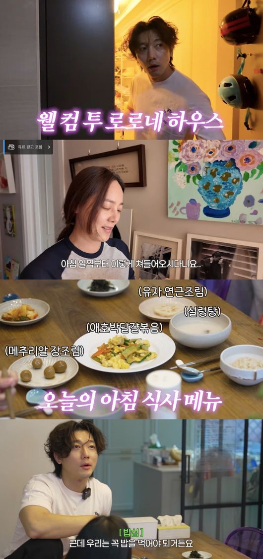 유진은 "난 궁금한데 남편 기태영은 우리의 아침이 너무 간소하다고 불평이고, 나는 '아니야 다른 집은 이렇게 밥 차려서 아침에 안 먹어' 이런주의다. 다들 어떠냐? 아침은 식사를 어느 정도씩 하시는지 궁금하다"고 물었다. 이에 기태영은 "나는 원래 아침을 진짜 중요하게 생각해서 아침을 안 먹으면 안된다. 아침을 먹으면 뇌가 돌아간다더라. 그래서 얘네가 아침 먹는 습관이 돼 있다"고 설명했다.