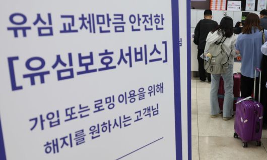 2일 서울 강서구 김포공항 국제선 청사 내 에스케이(SK)텔레콤 부스에서 여행객들이 유심 교체를 위해 대기하고 있다. 연합뉴스 |