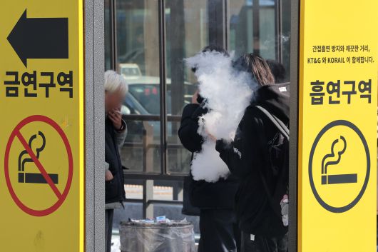 서울역 광장 흡연구역에서 시민들이 담배를 피우고 있다. 뉴스1 |