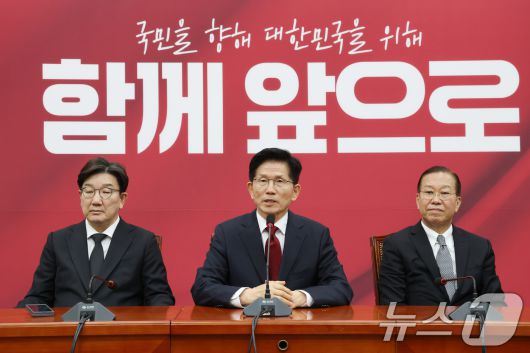 (서울=뉴스1) 이광호 기자 = 김문수 국민의힘 대통령 후보가 4일 오전 서울 여의도 국회에서 열린 선거대책위원회 회의에 참석해 발언하고 있다. 2025.5.4/뉴스1