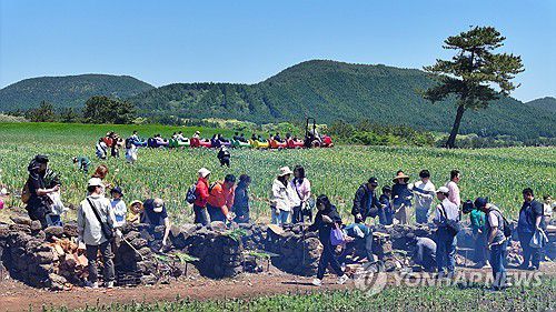 (서귀포=연합뉴스) 박지호 기자 = 연휴 이틀째인 4일 제주 서귀포시 표선읍 성읍리 보롬왓 농장에서는 '파릇파릇 대파축제'가 한창이다.