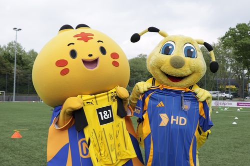 (서울=연합뉴스) 이영호 기자 = 프로축구 K리그1 울산 HD가 2025 국제축구연맹(FIFA) 클럽월드컵에서 대결하는 보루시아 도르트문트(독일)와 마스코트 교류 및 상호 협력을 펼쳤다.