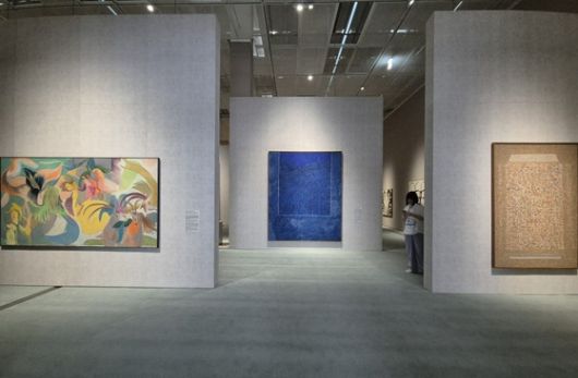 국립현대미술관 서울의 '한국현대미술 하이라이트' 전시장 입구. 최욱경의 '미처 못 끝낸 이야기'(왼쪽부터), 김환기의 '산울림 19-Ⅱ-73#307', 이성자의 '천년의 고가'가 걸렸다. 권근영 기자 |
