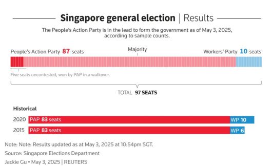 아시아의 금융 허브이자 인구 600만명의 도시 국가인 싱가포르는 높은 무역 의존도로 인해 글로벌 관세 전쟁에 취약한 국가로 꼽힌다. 높은 생활비와 주택 부족 문제 등 고전적 사회문제가 존재하며, 이에 더해 트럼프 정부의 관세 전쟁에 대응하는 것이 무엇보다 현재 시급한 국정과제로 떠올랐다. 싱가포르 국립대 무스타파 이즈딘 교수는 “유권자들은 안정과 연속성, 확실성을 위해 투표했고, 웡 총리에게 강력한 권한을 부여하는 데 투표했다”고 말했다.