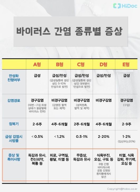 바이러스성 간염은 말 그대로 바이러스에 감염되면서 간에 염증이 발생하는 질환을 말한다. 현재까지 △A형 △B형 △C형 △D형 △E형 △G형 등 총 6개 바이러스형이 발견됐는데, 이 중에서도 우리나라에서 주로 발견되는 간염 바이러스는 A, B, C형 바이러스다.
