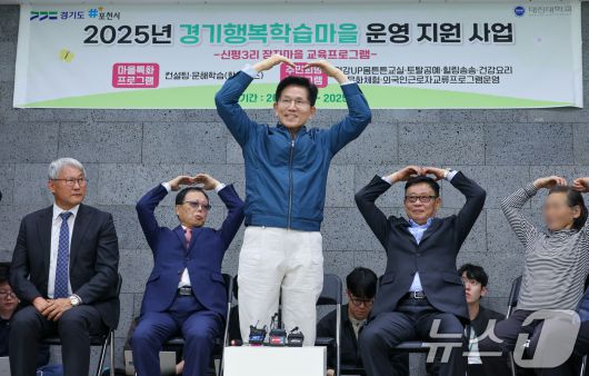 (포천=뉴스1) 안은나 기자 = 김문수 국민의힘 대통령 후보가 4일 오후 경기 포천시 한센인 정착마을인 장자마을 행복나눔터를 방문해 하트를 그리며 인사하고 있다. 2025.5.4/뉴스1
