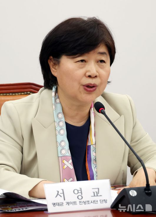 [서울=뉴시스] 조성봉 기자= 서영교 더불어민주당 명태균 게이트 진상조사단장이 21일 오후 서울 여의도 국회에서 열린 진상조사단 전체회의에서 '명태균, 홍준표 즉각 수사'를 촉구하는 발언을 하고 있다. 2025.04.21. suncho21@newsis.com |