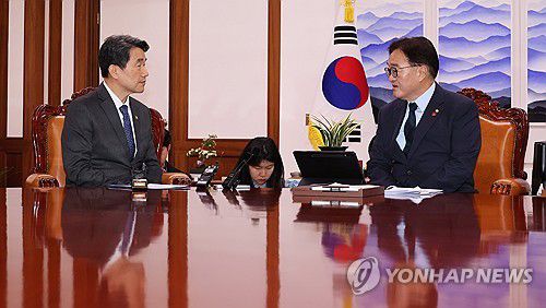 우원식 국회의장이 이주호 권한대행을 접견하는 모습. [연합뉴스 자료사진] |