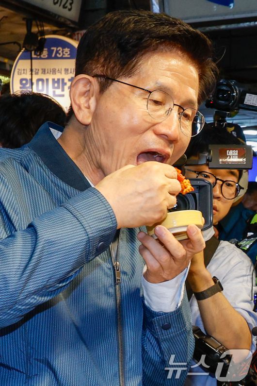 (의정부=뉴스1) 안은나 기자 = 김문수 국민의힘 대통령 후보가 4일 오후 경기 의정부시 제일시장을 방문해 알곤이찜을 시식하고 있다. 2025.5.4/뉴스1coinlocker@news1.krCopyright ⓒ 뉴스1. All rights reserved. 무단 전재 및 재배포, AI학습 이용 금지.